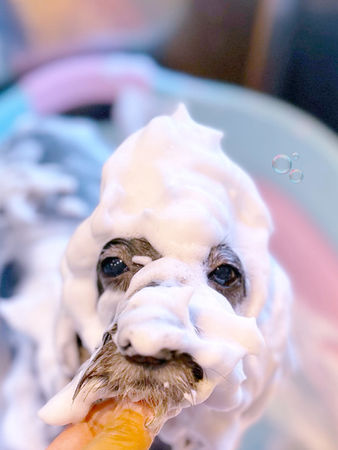 すべてトリマーの手で洗うことで、汚れの落ち具合や皮膚・被毛の状態を細かく確認できます。全身を丁寧にチェックし、しこりやできものなど小さな異変も早期発見につなげています。